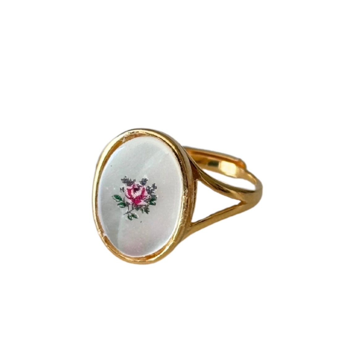 • 10x14mm Cabochon - Vintage mother of pearl with pink rose