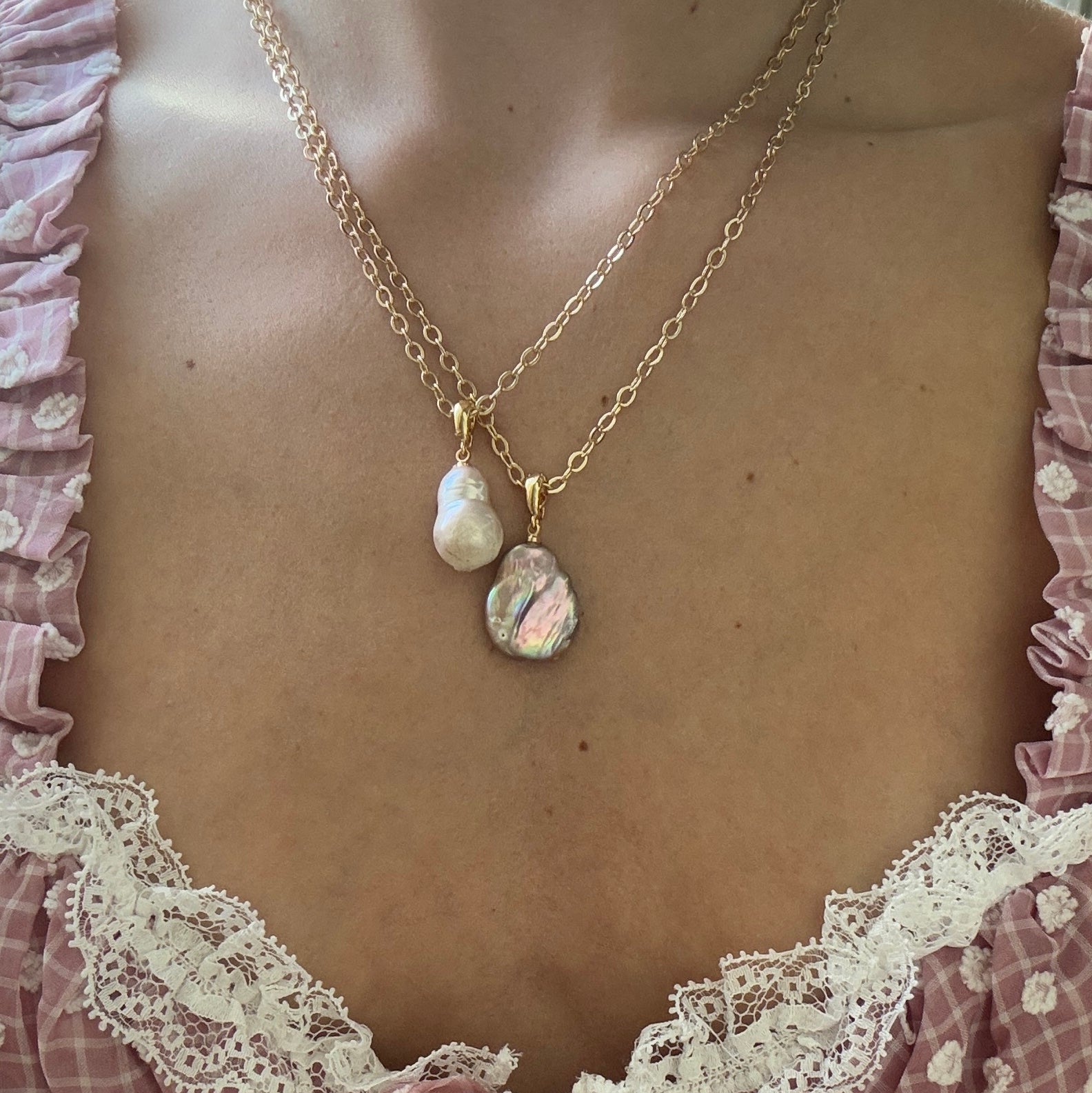 Baroque pearls are pearls with an irregular, non spherical shape. They are natural pearls so no two are exactly the same or the exact same as this photo.