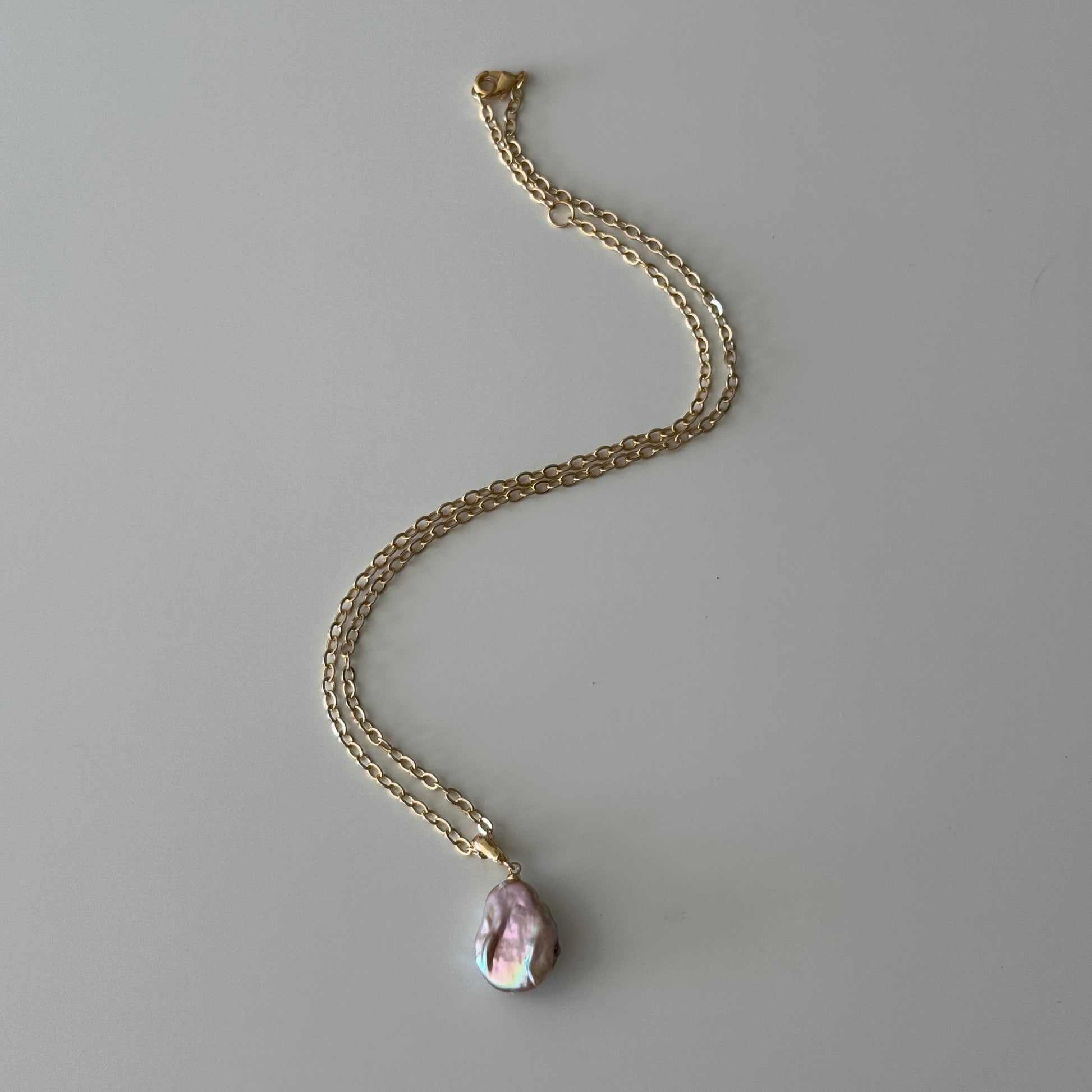 • Fresh water pink/purple baroque pearl with 24k gold filled clasp