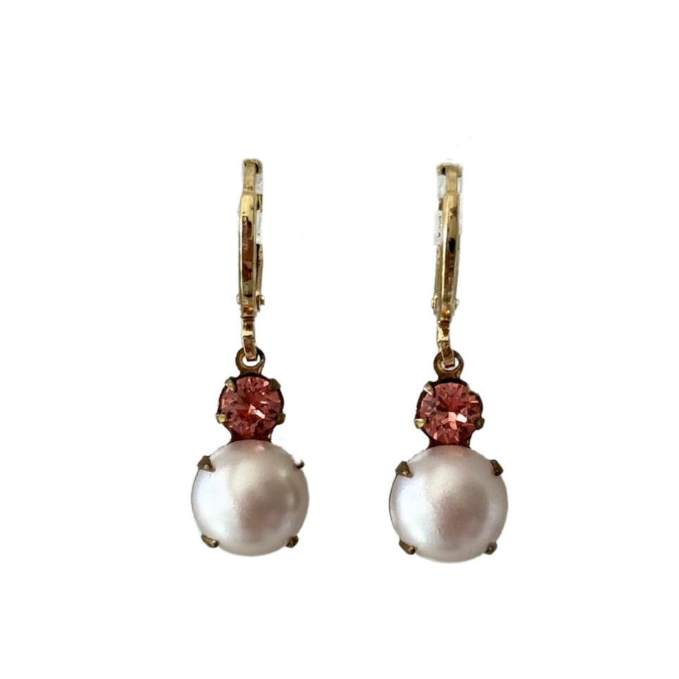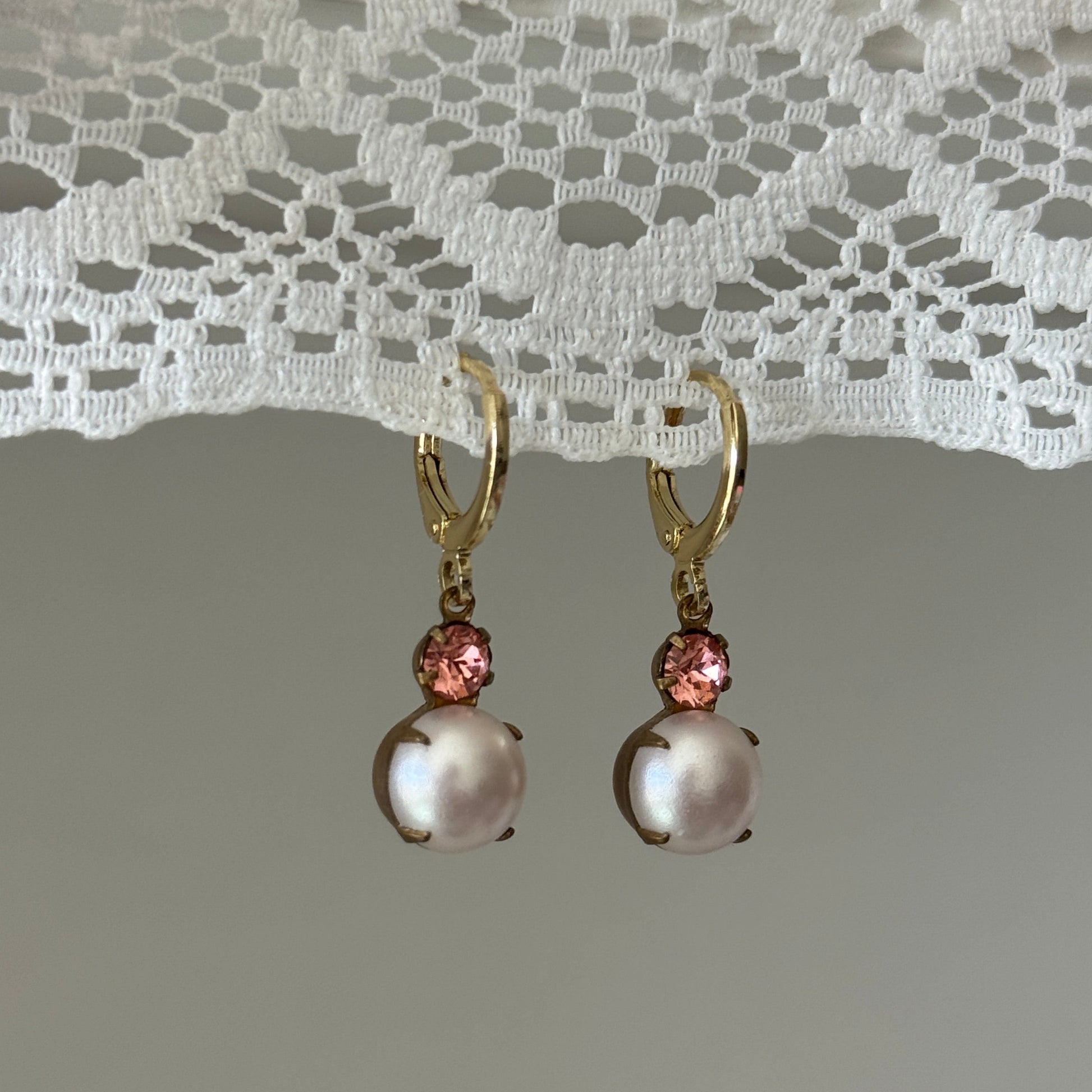 • Vintage pearl & pink rhinestone drops